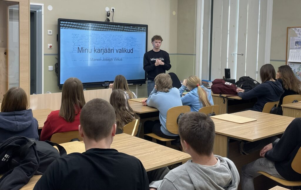 8.klass sai lisaks meremehele ühe külalisõpetaja tunni noore põllumehe näol. Külas oli Marwin Joseph Virkus Pärnumaalt, kes tutvustas oma valikuid ja kelle elu on mitmekesine ja huvitav.